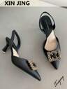 Xin Jing Shoes Höst/vinter damskor med spetsiga tår och ankelrem, moderiktiga pumps för pendling och bröllopsfester, eleganta