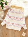 Flickkofta med rosett, volangkant, ribbad stickning, rund halsringning, raglanärmar, söt och elegant akademisk stil, avslappnad, lämplig för 3-12 år, höst/vinter, vår/höst