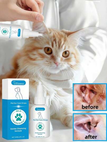 YEGBONG 1pc 60ml Pet Ear Care Drops, Suitable For Cleaning, Deodorizing, And Caring For Dog And Cat Ears - Multicolor - View 1