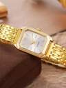 1 st. elegant damklocka med fyrkantigt guldfärgat boett, strass-urtavla, fyrkantig bezel och justerbar kedja, kvartsstil