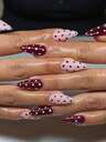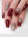 24 st. körsbärsfärgade minimalistiska korta fyrkantiga nagelstickers, inkluderar 1 flaska nagellim och 1 nagelfil, lämpliga för kvinnors vardagskläder och nagelvårdsshopping