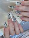 24 långa kistaformade press-on-naglar, franska, blommiga, fjärilsprickiga, diamantglittrande lösnaglar med 1 nagellim och 1 nagelfil. Nageltillbehör. Naglar.