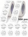500 st/rulle tackklistermärken i bohemisk stil, 2,5 cm runda gröna runda stämpelförseglingsetiketter i 6 färger, flera stilalternativ, lämpliga för företag, bröllop, födelsedagar, babyshower-festtillbehör, vattentäta PVC-förseglingsklistermärken