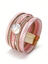 1 st europeisk stil flerskikts PU-läder och metall Stort båge magnetlås svart armband för kvinnor