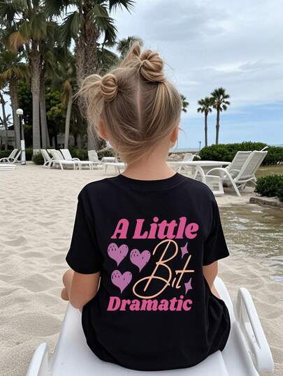 Young Girls Casual Slogan & Heart Print Short Sleeve T-Shirt, Summer