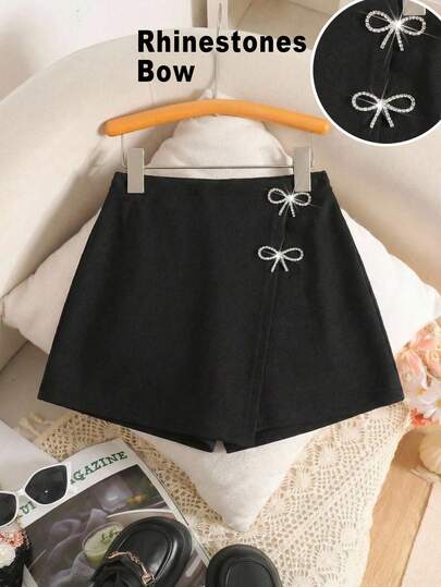 Young Girl Black Velvet Star Glitter Casual Mini Skirt - Black - View 1