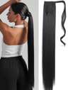 Klipp i hästsvansförlängningar, 16-36 tum extra lång lockig svartbrun syntetisk hästsvans värmebeständig peruk för kvinnor dagligen bruk
