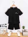 Unga pojkar Street Style enfärgad 3-delad set Minimalistisk bokstavsemblem vävda shorts, avslappnad