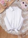 Ung flicka två - Avslappnad tränings-T-shirt med knutkant, kortärmad, sommar