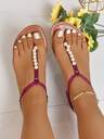 Nya moderiktiga sandaler med rem, snygga, avslappnade slip-on-sandaler i romersk stil i svart, beige, brunt; enfärgade, tjocka, vävda, bekväma strandsandaler; bloggare-rekommenderade sandaler med tjock sula; sommarstrandskor; eleganta tofflor med spänne och låg klack och rund tå; luktresistenta, halkfria läderpärldekorerade, enkla utomhustofflor; mångsidiga platta slip-on-sandaler för kvinnor
