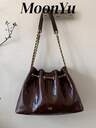 Damaxelväska, moderiktig nitinläggning i konstmocka, retro halvmåneväska, kaffefärgad
