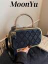 Damaxelväska, moderiktig nitinläggning i konstmocka, retro halvmåneväska, kaffefärgad