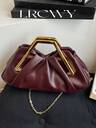 Plisserad handväska för kvinnor, elegant axelväska med lyxig metallkedja, lämplig för shopping, dejting, fest, vinröd