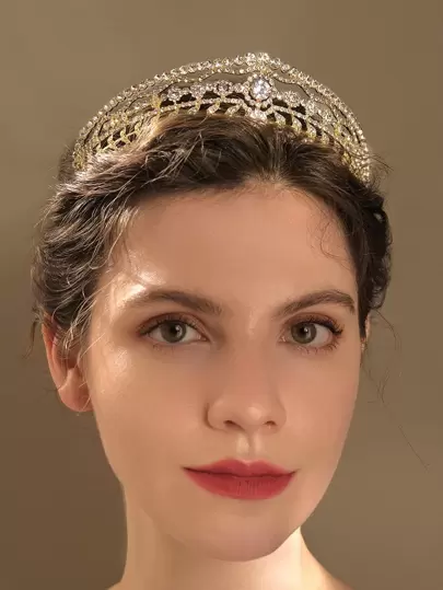 Hår Accessoar Kubik Zirkonium Dekoration Krona - Guld - Visa 4