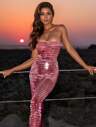 Enfärgad axelbandslös snörningstopp i kombination med en åtsittande lång pennkjol med glittrande strass för kvinnor, tvådelat set för födelsedagsfest, bröllop, formell middag