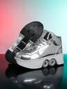Nya LED-rullskridskoskor för barn, 4 hjul, uppladdningsbara, infällbara hjul, lysande läderdesign, söta kontrastfärgade kardborreband, sportskor som passar alla årstider, rullskridskoskor för pojkar och flickor