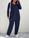 Elenzga Plus Size Women's Textured Fabric Long Cardigan And Pants Set, Elegant For Dates, Gatherings, Office Commute, Military Green Two Pieces Suit, Vintage Style, Suitable For Graduation, Holidays, Valentine's Day, Music Festivals, Mother's Day, Halloween, Thanksgiving, Easter, National Day, Dances, Dates, Parties, Weddings, Outdoor Trips, Etc. Matcha Pant Suit Set Plus Modest Two Piece Set Green Outfits For Women Modest Sets For Women Plus Size Women Clothes 2 Piece Plus Size Pants Suit
