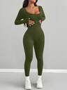 AiTyi Damjumpsuit, Avslappnad Mode Sexig Elegant U-ringad Slim Fit Utomhussport Mångsidig, Lämplig För examen, Jul, Nyår, Thanksgiving, Höst/Vinter Elastisk Stickad Långärmad Utsvängda Benjump, Väl Passform