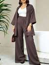 SHEIN Plus Size Women Casual/Office Solid Color Shirt And Pants 2 Pieces Set