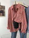 Avslappnad röd- och blårutig skjorta med knappar och fickor framtill, höst
