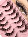 7 Pairs Of D-Curl Thick & Fluffy Russian Natural Lashes, Classic Cat Eye Mink Lashes, Cross Fiber 5D Thick & Long False Eyelashes, Soft & Natural For Natural Makeup Look