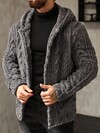Men's Solid Color Zip-Up Fleece Lined Casual Hoodie Jacket, Autumn Knitted Cardigan, Black Cardigan, Black Jacket, Men's Cardigan Sweater, Suitable For Daily Wear, Men's Outerwear, Suitable For Christmas, New Year Holiday, Party, Dinner, Gift For Friends, Husband, Boyfriend