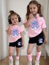 SHEIN Cream White & Pink, Sweet Minimalist Heart Pattern Print, Cute Deer Outfit, Young Girl Casual Comfortable Soft Loose Round Neck Short Sleeve T-Shirt And Tight Cycling Shorts, Suitable For Spring/Summer Daily, Home, Vacation, Holidays, Pink Valentine's Day Atmosphere, Spring & Summer Outfits For , Easy Comfort, Stylish Little Girl Set, Casual Wear, Kids Heart Graphic Clothes, Spring & Summer Set, New Style, Chill Chill