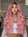 Rolig och moderiktig 24-tums guldfärgad lång vattenvågig hår med lugg värmebeständig syntetisk peruk för kvinnor för cosplay, Halloween-kostymer, het