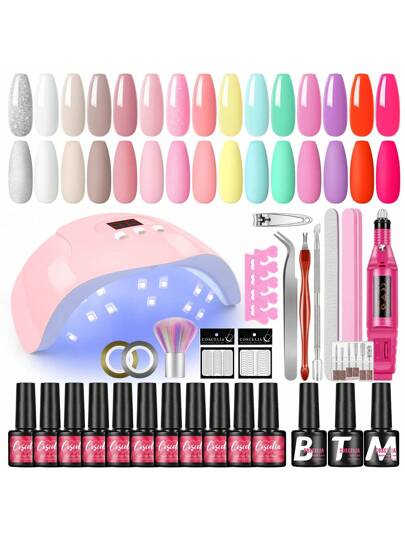 coscelia 15 Colors Blue Macaron Glitter Gel Nail Polish Set, Includes UV Lamp, Nail File, Matte Base Coat & Top Coat, Ideal Nail Care Starter Kit Gift - Multicolor - View 1