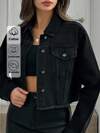 EURMUSE Women's Black Breathable & Comfortable Lapel Collar Sleeveless Patchwork Pocket Moto Denim Vest Crop Top Jacket Womens Vest Cropped Jackets Western Vest Denim Vest For Women