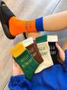 4 par slumpmässig leverans rosettstrumpor för flickor, tunna svettabsorberande långa strumpor till mitten av vaden svarta och vita matchande ins-stil, vår och sommar, höst