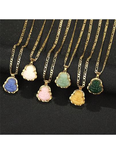 dollrinboy 1pc 14K Gold Plated Buddha Pendant Necklace, Unisex, 3mm Flat Figaro Chain Necklace - Buddha - View 27