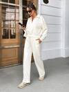 Women's Casual Sports Street Style Stand Collar Zip-Up Long Sleeve Sweatshirt And Wide Leg Pants 2 Piece Set, New Arrival In White And Black Color Block, Casual Beach Sports Sweatshirt Sweatshirt For Outdoor, Office, Home, Airport, Daily Wear In Spring Autumn, Suitable For Graduation, Back To School, Female Teacher Outfit, Loose Fit Long Sleeve Top And Wide Leg Pants Set