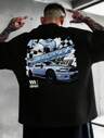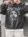Plus Size Män Letter & Palm Tree Printed Huvtröja med dragsko, höst/vinter