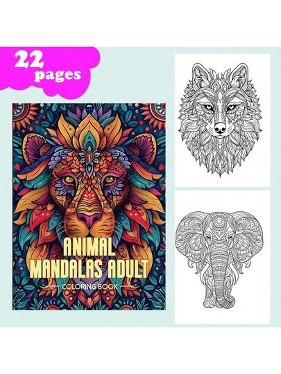 Deluxe Animal Mandala Art Coloring Book For Adults - 22 Thick Pages, Relaxing Craft Activity, Perfect Gift For Birthdays & Holidays, Perfect For Room Decor.Back To School,School Supplies - Single Piece - View 1