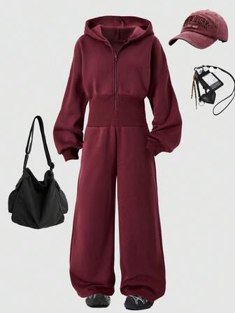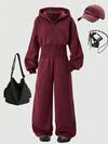 SHEIN ChillGRL Vitt och grått set med huva, dragkedja och hög midja i fleece för flickor