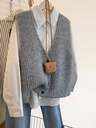 JIANHU Fuzzy Bow Tie Cardigan – Mjuk och mysig stickad kofta för hösten/vintern, stickade kläder med avslappnad passform, jul, hem och vardag