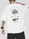 Men's Plus Size T-Shirt, Fashion Loose Fit, Coconut Tree And Letter Print, Short Sleeve, Suitable For Summer, Cool, Summer Men, Men, Men's T-Shirts