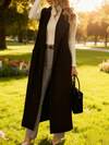 Camellia Autumn/Winter New Cotton Long Sleeve Lapel Button Midi Trench Coat, British Style