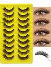 10 Pairs Cat Eye Effect False Eyelashes, Fluffy & Soft Black Lash Strands, Delicate & Natural, Dense Faux Mink, Full Strip Fake Lashes