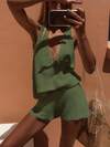 Resyla Women's Solid Color Stand Collar Fitted Elegant Casual Short Sleeve Sweater