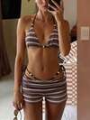 Swim Vcay New Spring/Summer Fashion Beach Resort Navy Style Textured Striped High Cut Side Tie Triangle Top And Ruched Shorts 3-Piece Swimsuit Set For Women