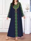 Al Najma Plusstorlek Damklänning med blommig broderi och kontrasterande detaljer, V-ringad långärmad i arabisk stil