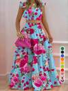 Travachic 2pcs/Set Tropical Print Short Sleeve Top & Shorts, Suitable For Holiday , Afternoon Tea, Wedding Season, Beach Cruise Vacation, City Road Trip Vacation, Boho Vacation, Music Festival , Beachwear, Easter, Beach Outfits For Woman, Elegant Clothes For Women, Vacation Outfits Women, Concert Outfit Women, Tropical Vacation Woman Clothes, Holiday Outfits, Bohemian Clothes,For Spring Sunmmer And Autumn