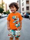 Little Bitty Young Boy Casual Short Sleeve T-Shirt, Cartoon Dinosaur Print, Fashion Outdoor Wear, Spring/Summer