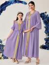 Al Najma 1set Women's Round Neck Long Sleeve Dress And Embroidered Mesh Jacket 2 Piece Set Fall Cloth For Women
