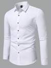 Manfinity Mode Men Button Front Solid Slim Fit Long Sleeve Up Plain All White Basic Shirt For Husband, Fall