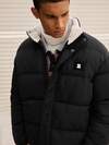 SWAVVY Men's Standard Size Casual Long Sleeve T-Shirt, Black With Printed Patchwork, Round Neck, Suitable For Spring And Autumn