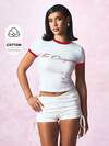 SUMWON WOMEN Original Slogan Graphic Baby Ringer Tee Short Sleeve Fitted Retro Style Classic Summer Casual Crop Top Fashion Statement Wear