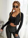 SHEIN EZwear Button Front Rib-Knit Crop Cardigan,Long Sleeve Tops,Tops For School